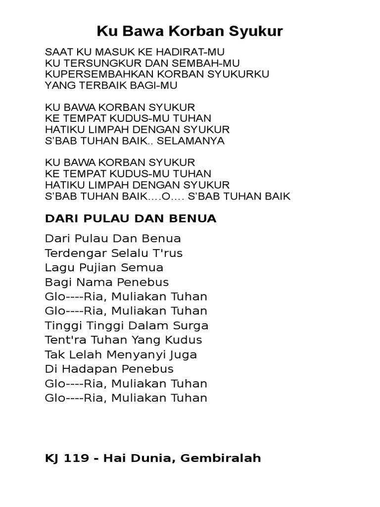 Liriklagukristen.id telah mempublikasikan banyak lagu gereja dari penyanyi rohani populer, setiap posting lirik juga dilengkapi gambar sehingga bisa dengan mudah diunduh ke ponsel atau komputer. Dari pulau dan benua fingerstyle guitar ver lyrics and. Lagu gbkp kitab ende enden apps on google play. Lagu ini telah dibawakan dalam berbagai versi, bahkan bait: Lirik dari pulau dan benua oleh glenn fredly.